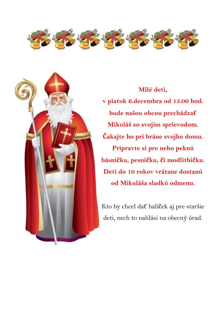 "Dobrý svätý Mikuláš, mnohým deťom dary dáš, ovocie i sladkosti, spravíš veľa radosti."